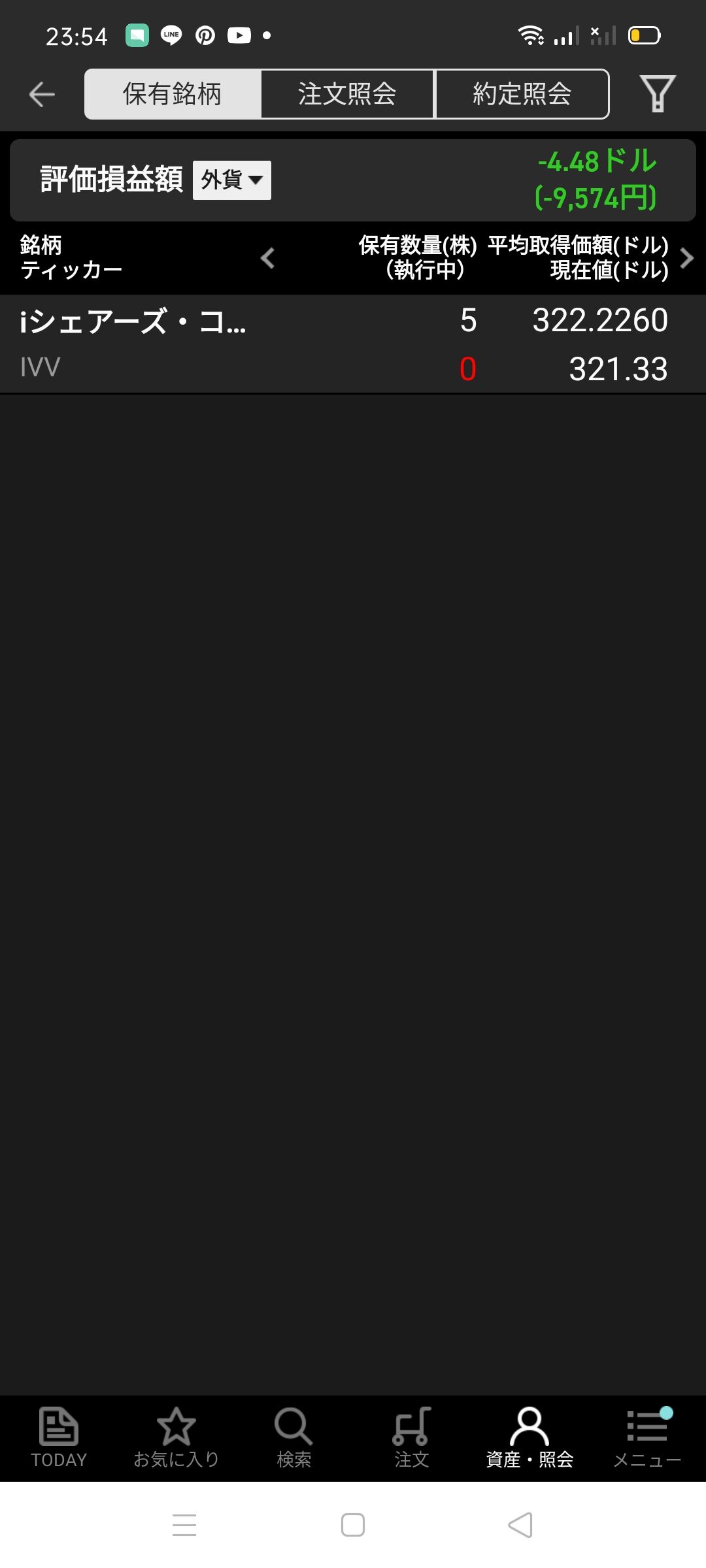 円貨決済で320.6400ドルで約定して現在したの画像のように日本円で−9574となっています