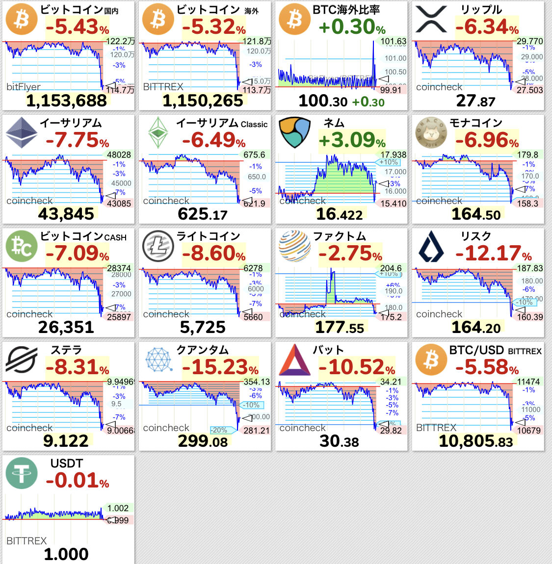 続きを読む Source: コイン速報 | 仮想通貨ニュース・暗号資産相場情報・5chまとめ 【悲報】ビットコイン、122万円から115万円まで他の通貨を巻き込み暴落する・・・【BTC】