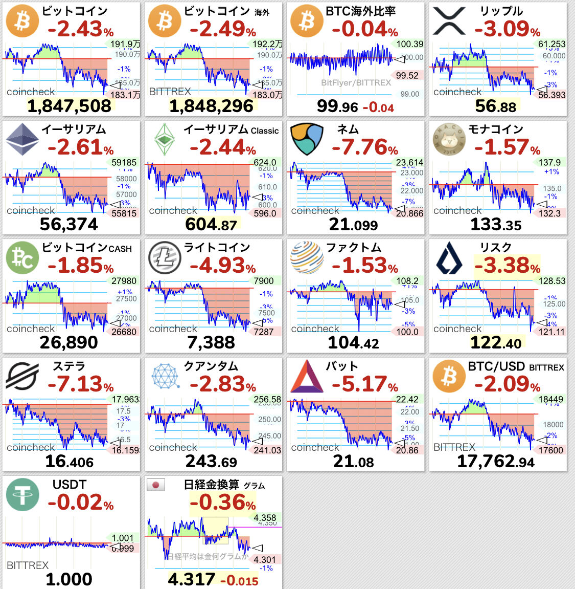 【悲報】ビットコイン184万円まで下落。全面安wwwwwwwww【BTC】