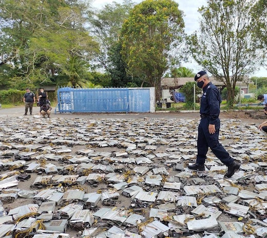 撮影場所はポルネオ島にあるミリ。警察署の敷地内にずらりと並べられたPCは1069台にのぼります。これらはビットコインなど仮想通貨をマイニング(採掘)するために最低限のパーツで構成されたパソコンで、2021年2月から4月にかけて警察が押収したものです。