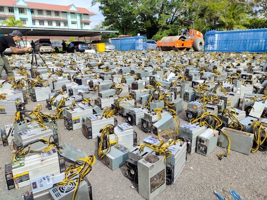 マレーシア警察は2021年7月16日、押収品のビットコイン採掘マシンをまとめてロードローラーで破壊する様子を公開しました。