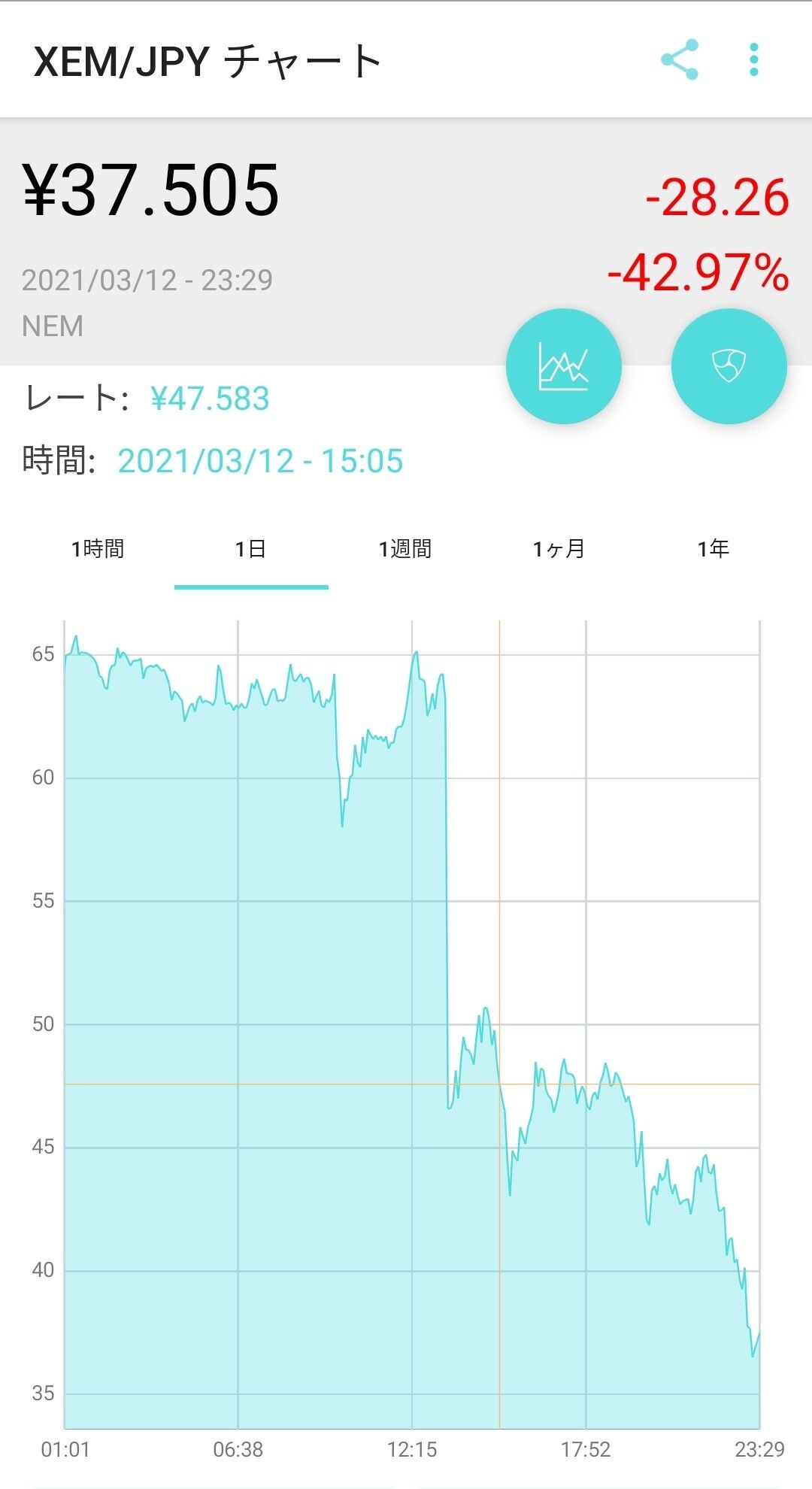 【悲報】仮想通貨ネムさん1日で42%も価格が下落してしまう