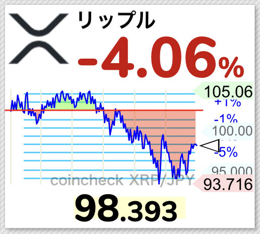 【悲報】仮想通貨リップル、100円割れて90円台に突入する【XRP】