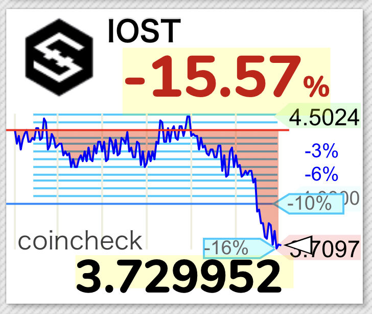 【悲報】仮想通貨IOST、3.7円台まで下落。1週間で半分になる・・・