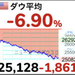 【悲報】NYダウ1800ドル安の暴落 「第2波」懸念で下げ幅史上4番目