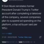 【悲報】Twitterのスポンサー「トランプ復活させたら広告とめるけどw」イーロンマスク、早速終わる