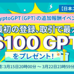 【日本ユーザー限定】仮想通貨取引所BitgetがCryptoGPT(GPT)の追加報酬イベント 初回登録、取引で最大100ドル相当のGPTをプレゼント!