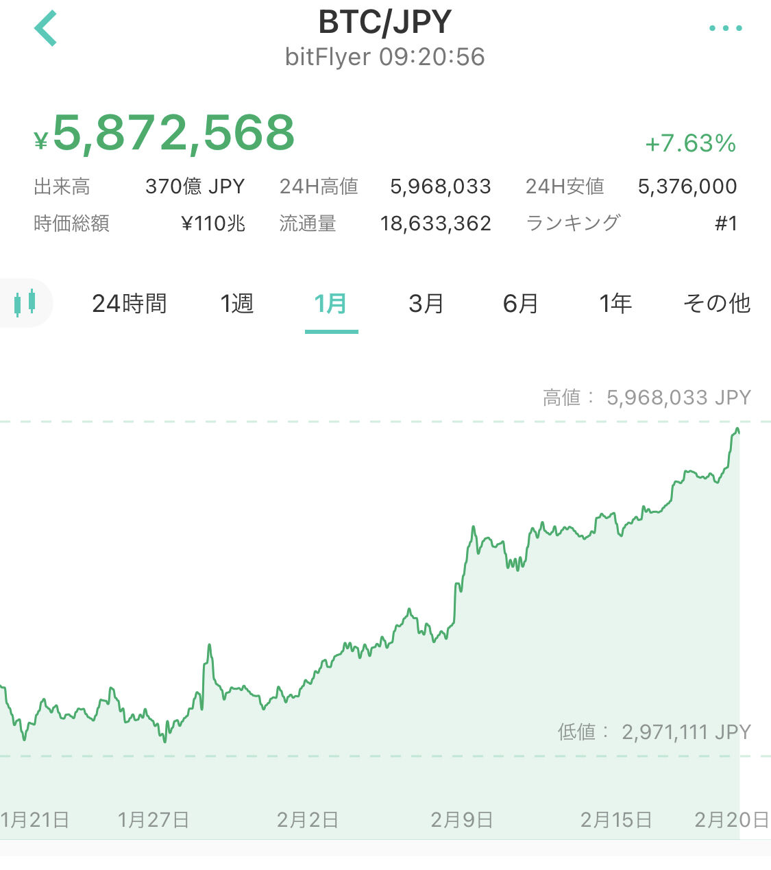 【朗報】ビットコインさん、2月で価格が倍になってしまう