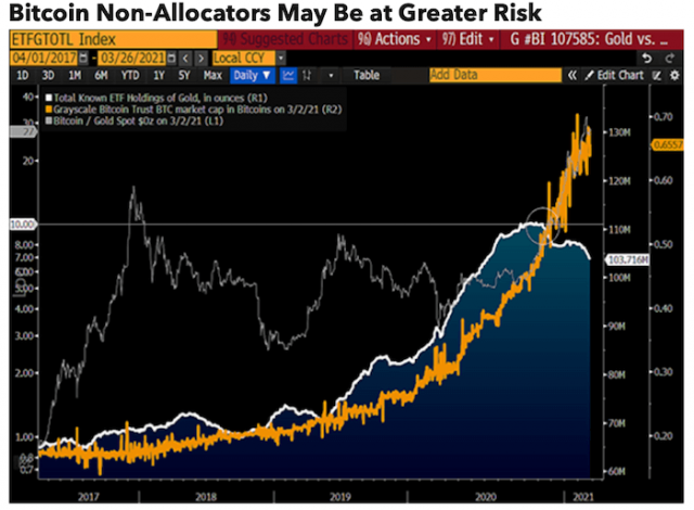 フォリオにおいては、ビットコインがゴールドに置き換わるペースが加速していることを、あらゆる指標が示している。