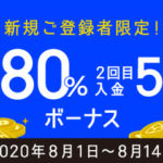 最大レバレッジ500倍の仮想通貨取引所CryptoGT、8月14日まで限定で初回入金80%のボーナス、2回目入金で50%ボーナスのキャンペーンが始まりました!!