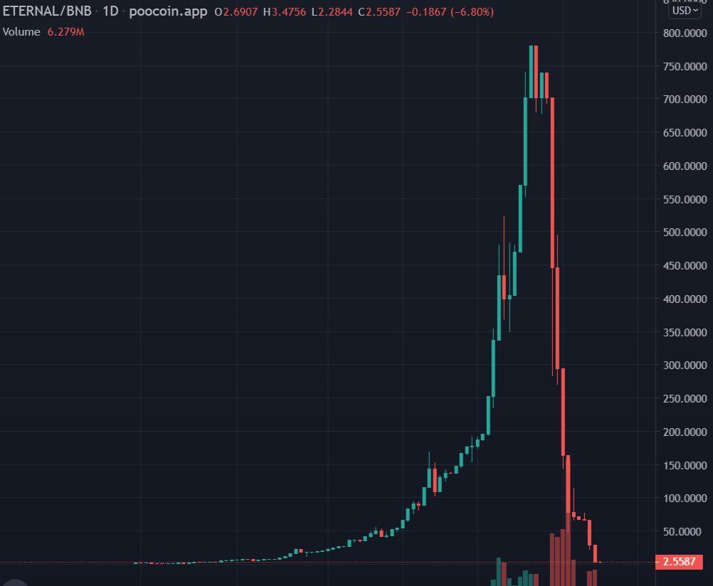 【超絶悲報】仮想通貨ETERNAL、800ドルから2ドルまで阿鼻叫喚の大暴落。第二のTITANが誕生する・・・