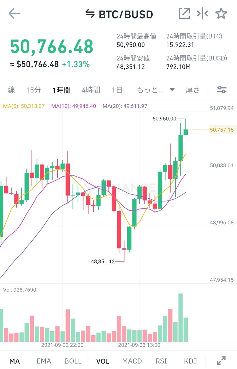 【速報】ビットコインさん菅総理の総裁選不出馬のニュースにより再び5万ドルへ急騰