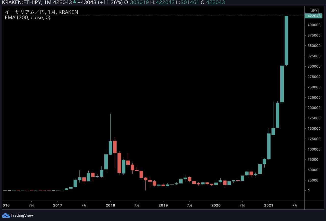 【速報】仮想通貨イーサリアムが40万円突破 1年間で約20倍上昇 背景に次世代イーサリアム2.0の存在か