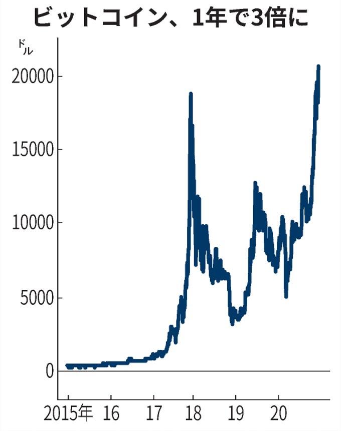 代表的な暗号資産(仮想通貨)のビットコインが初めて2万ドル台に上昇した。