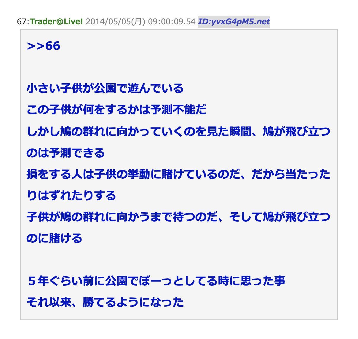 2chで昔見た、FXで50万から1億まで増やした人の書き込み